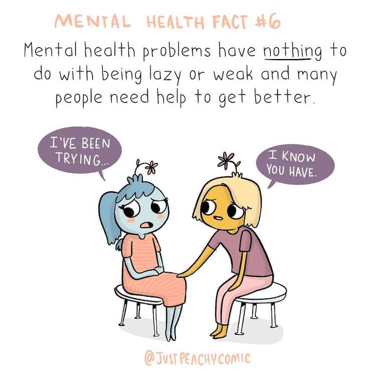 Holly Chisholm (@justpeachycomic) illusztrátor és szerző kreatív képességeit arra használja, hogy segítsen másoknak abban, hogy kevésbé érezzék magukat egyedül. Az alkotó különleges rajzokat készített mentális egészségügyi statisztikákról, kiválasztva néhány fontos tényt, amit vizuális megjelenítéssel hoz még közelebb hozzánk. Chisholm azt reméli, hogy a rajzokkal oktathatja közönségét, miközben ledönti azt a stigmát, ami a mentális betegségek köré épült.