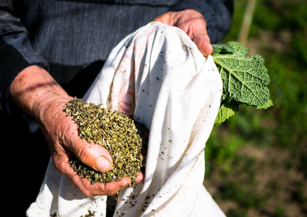 Jolánka néni olyan áhítattal, olyan lelkesen mesél a gyógynövényeiről, hogy eszem ágában sincs a kérdéseimmel félbeszakítani. Elmondja azt is, hogy a szomszéd faluból, Nagyrozvágyról jött hozzá egyszer egy katona: – A lábával jött, a sarka volt beteg, megfagyott, berepedezett. Megszedtem a lándzsás útifüvet, betekertem vele és rendbe jött – lándzsás útifű például van mindenhol, csak nem ismerik az emberek és rajta gázolnak. – jegyzi meg miközben a kezembe nyomja a kis üvegcsébe öntött orbáncfűolaját. – Tudod, mire jó még? Ha rántod a húst és a kezedre megy a forró olajból, ebből kell tenni a sebre. De a szomszéd kislányt például nemrég megcsípte egy méhecske, ordított. Hívtam, jöjjön. Kománém meg a darázsfészket bolygatta. Gyorsan bekentem a sebeiket olajjal. Volt itt egy fiatalember is, akit egy kecskedarázs szúrt meg, ő is ezt használta, majd kért még egy üveggel – azt mondta, ő meg is fizeti, csak adjak neki. Dehogy fogadok el érte pénzt. Kis csekélység ez az olaj, de hasznos. Jó érzés segíteni, erőt ad ez nekem. A Jóisten megáldott azzal, hogy minden növényt felfedezek, és minden növény megterem a kertemben. Ha el vagyok keseredve, egy csésze teát megiszom és megnyugszom. Mindenkinek ezt kellene tennie. Szerintem ez a hosszú élet titka. Menjünk, aztán nézzünk szét a kertben. Csak hozok egy kis száraz teát, azt elviszed és megfőzöd. Jó? – Azzal belém karolt és elsétáltunk előbb a spájzajtóig, majd a nyári konyha ajtaján kilépve a kiskert felé vettük az irányt.