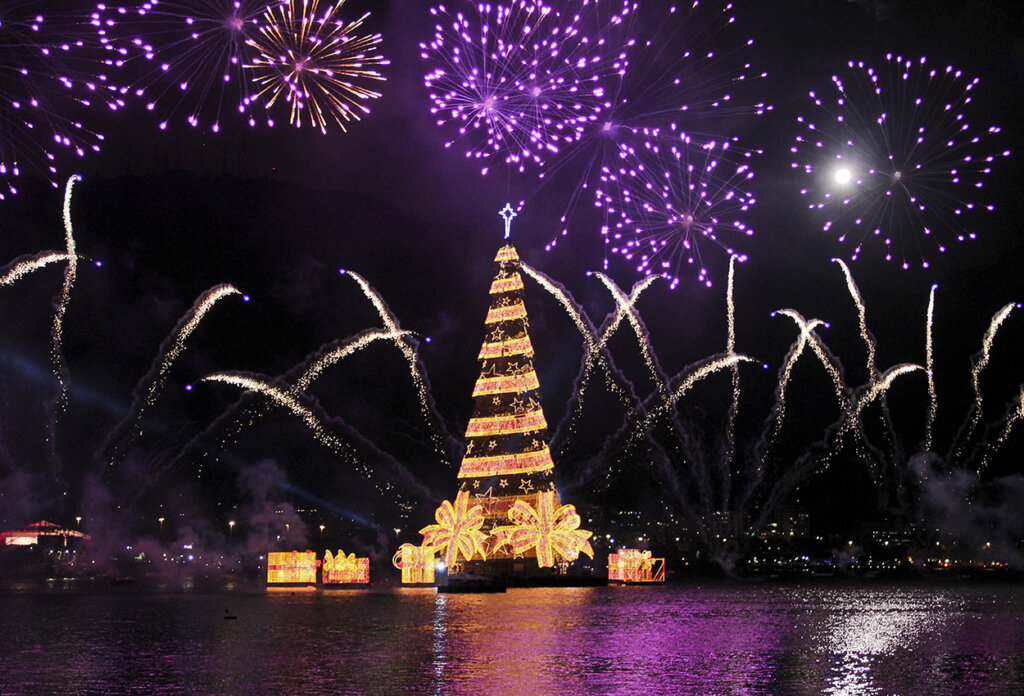Brazíliában mindent stílusosan ünnepelnek, és ez alól természetesen a karácsony sem kivétel. A lebegő karácsonyfa, amit több mint hárommillió égő világít az ünnepekben, 80 méteres magasságban uralja a Rodrigo de Freitas lagúnát.