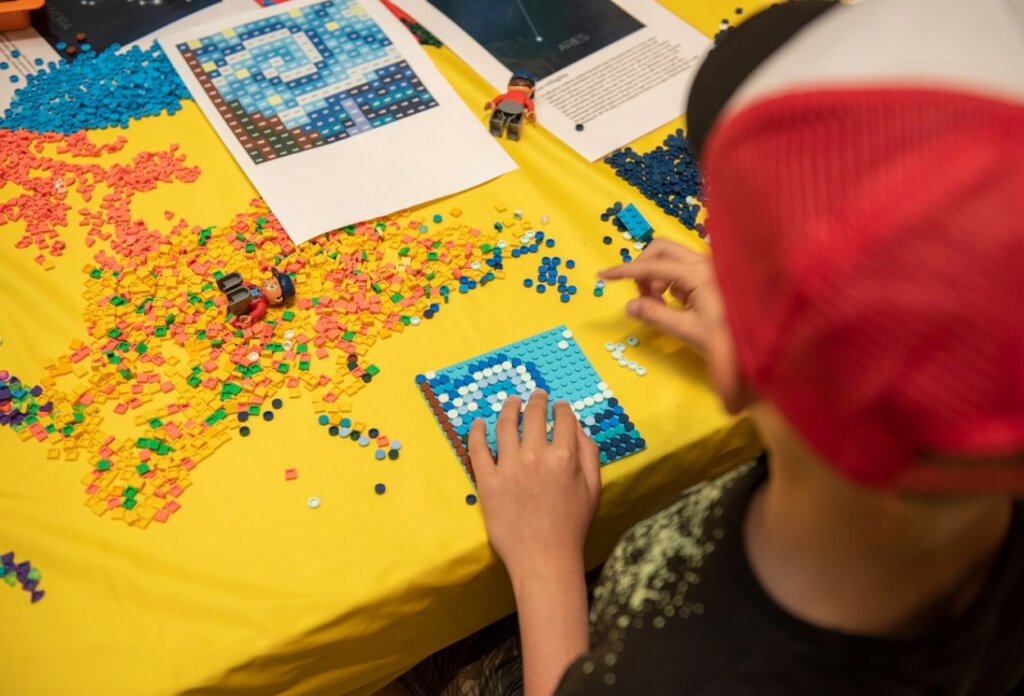 A madarak és a csillagok mellett a gyerekek játszották a főszerepet a Múzeumok Éjszakája egyik legizgalmasabb programján, ahol ikonikus műalkotások egyedülálló, 1,5 x 1,5 méteres, modern átdolgozásait készítették el a résztvevők. Az öt mestermű LEGO mozaikkép változatát a nyíregyházi tizenévesekből álló tekerd! csoport álmodta és tervezte meg, összesen mintegy 112 932 darab LEGO elem felhasználásával. A közösségi építést is ők irányították: a látogatóknak minden apró darabot pontosan a helyére kellett illeszteniük, hogy végül összeálljanak a legkülönbözőbb korszakokat megidéző képek.
