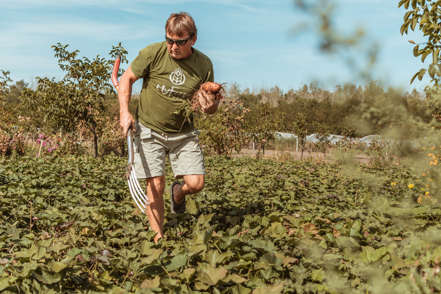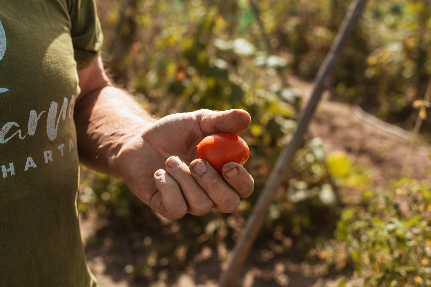 „Hozok egy sörretket” – szólt a távolból Kövesdi Sándor. Mire felkaptam a fejem, már landolt is a méretes gyökérzöldség a ládámban, egy hatalmas cukkini, néhány levél mángold és egy csokor batáta mellett. A Bács-Kiskun megyei agrárfalu, Harta külterületén található birtokon Sándor és fia, Gábor kalauzolt végig egy ráérős szombat délelőttön. Miközben a leszúrt karókon felfuttatott paradicsomot kóstolgattam és az égbe meredő mángoldleveleket csodáltam, helyi idegenvezetőim a vegyszermentes termelés, illetve a családi vállalkozásuk sikerének titkába is beavattak. Az egyórás látogatás alatt nemcsak információkkal, hanem egy örökre szóló élménnyel és egy nagy csomag kóstolóval is gazdagodtam.
