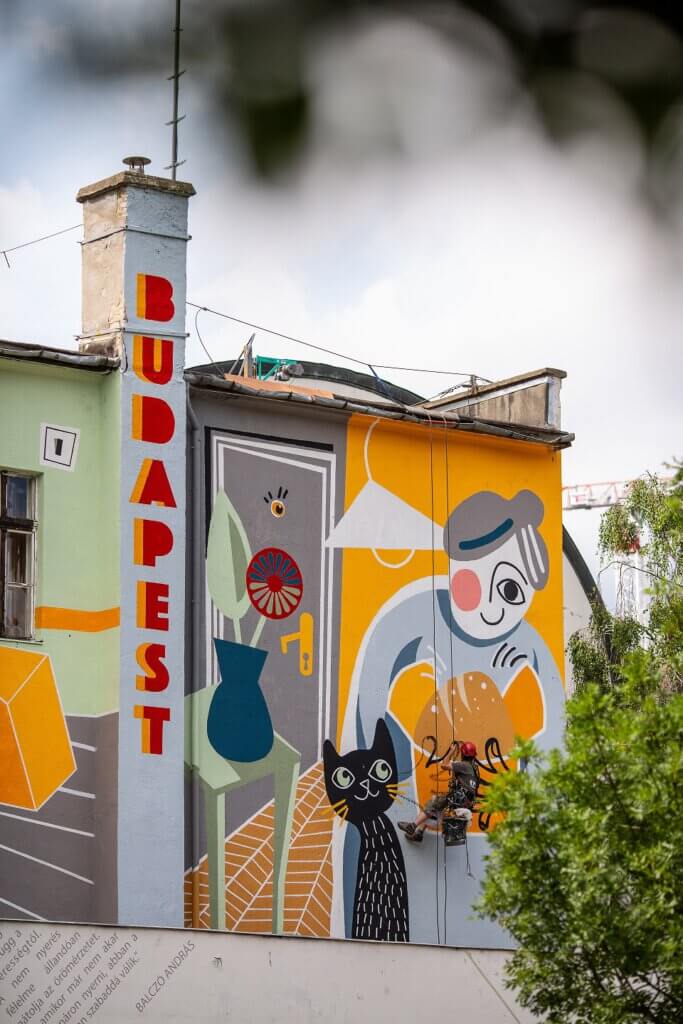 Az alkotás, melyet a Színes Város Csoport művészei a 420 nm területű falfelületre varázsoltak közel 180 liter festékből, 12 nap alatt készült el. A városszínesítő csapat már számtalan budapesti tűzfalat megszépített és tett vonzóvá a helyiek és a turisták számára.
