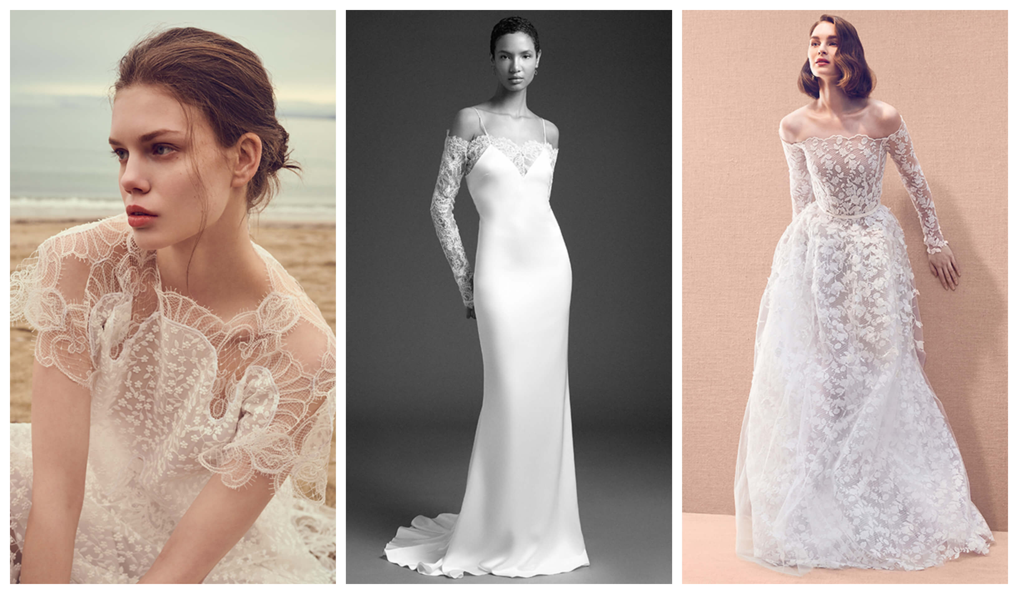 A romantikus csipke nélkül lehetetlen elképzelni egy esküvői szezont, ezért természetesen 2020-ból sem hiányozhat ez a textúra. Jövőre a hosszú ujjak és a szoknyák mellett a dekoltázsok is csipkébe borulnak. Az anyag mintázatát követő és hullámos felsőrészek bájossá és egy cseppet modernné varázsolják a hagyományos szabásokat.