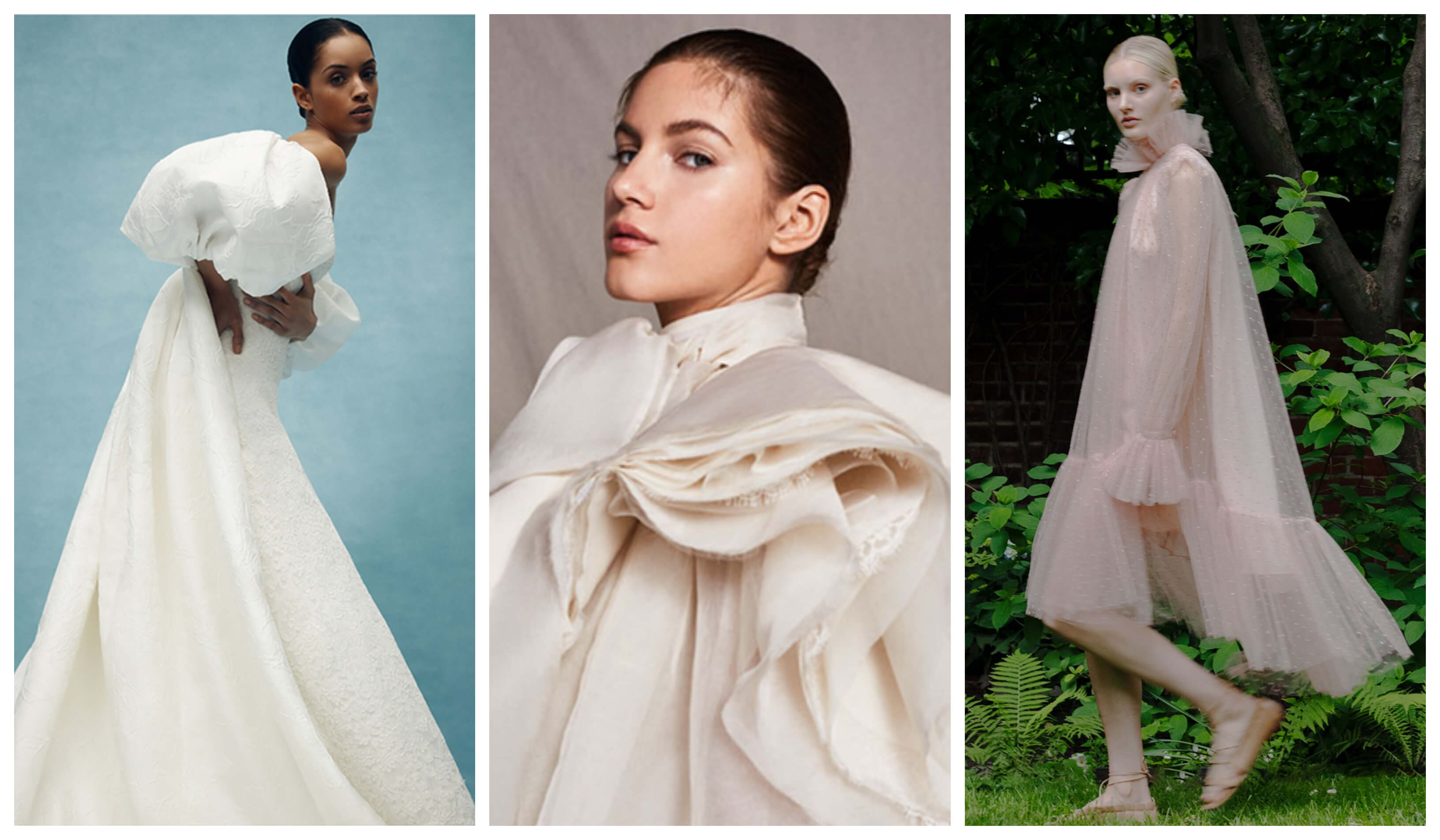 A nagyméretű puffos ujjak, a többrétegű gallérok és fodrok, valamint a hatalmas szoknyák visszatértek és biztosítják, hogy a terembe lépve minden szem a menyasszonyra szegeződjön. A 80-as évek varázsa a 60-as évek visszafogottságával keveredik ezekben a ruhákban és azt üzenik, van amikor igenis a méret a lényeg.