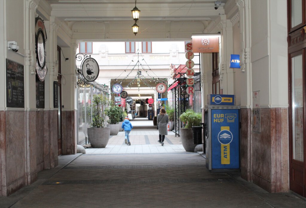Ritka látvány a rolleres a Gozsdu-udvarban: a máskor hömpölygő tömegben lépni is alig lehet