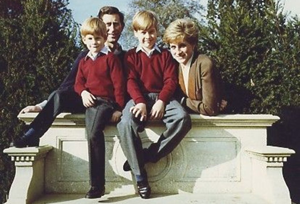 Válásukat megelőzően hat évvel Diana és Károly fiaikkal pózoltak képeslapjukon. Az 1990-es fotóhoz a hercegnő egymáshoz illő szettekbe öltöztette a hercegeket, Vilmos és Harry piros pulóvert és szürke nadrágot viseltek. Így ülnek a palota kertjében, míg szüleik mögöttük mosolyognak.