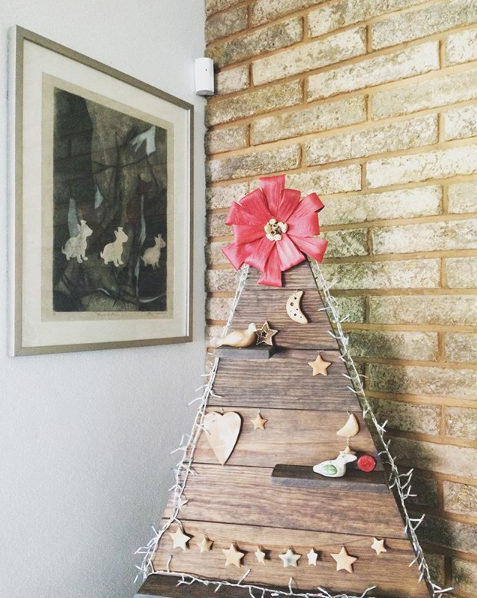 Nekem ez a kedvenc alternatív karácsonyfám, mert egyszerűen elkészíthető, helytakarékos, de mégis mutatós. Gyűjts a kertből vagy a közeli parkból különböző hosszúságú ágakat, és két hosszabb zsineggel kösd össze őket. Ezután rögzítsd a falra a karácsonyfát, majd tegyél rá díszeket és fényfűzért.