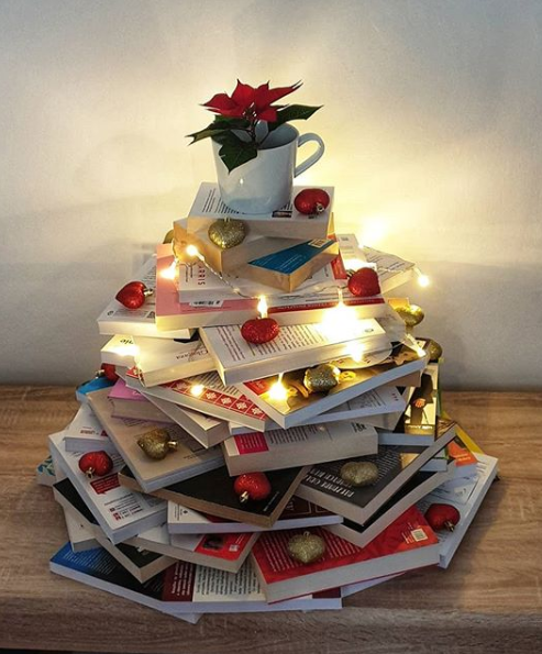 Anyukám könyvtárosként dolgozik, a munkahelyén ők ehhez hasonló karácsonyfával csalnak mosolyt az olvasók arcára. Neked sincs másra szükséged, mint sok-sok könyvre, néhány díszre, egy fényfüzérre és egy mikulásvirágra. Azért próbálj meg olyan könyveket összeválogatni, amelyeket nem az ünnepek alatt tervezel elolvasni, mert könnyen összedőlhet a remekmű. A díszítésnél figyelj oda a díszek formájára, mert a kerek gömbdíszek könnyen legurulhatnak a könyvekről.