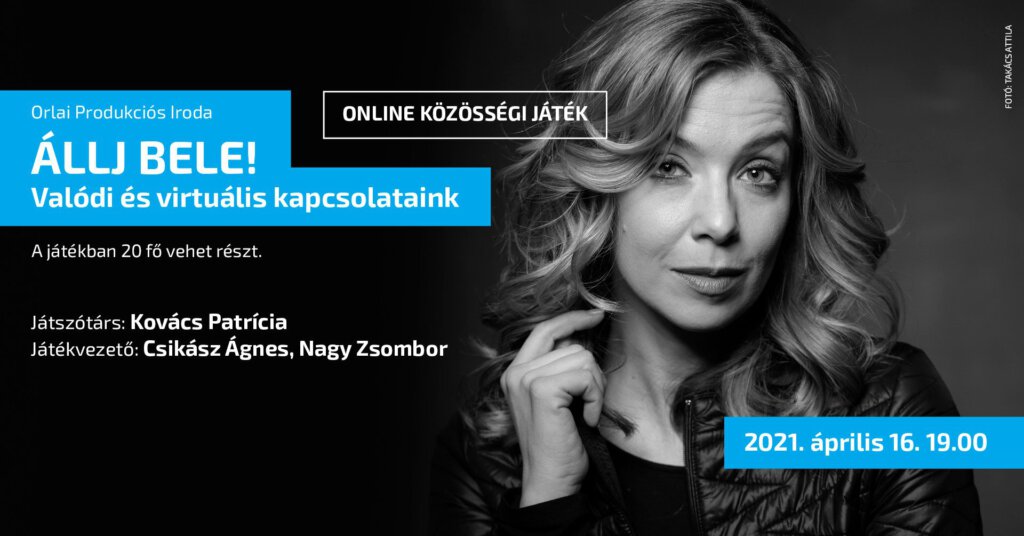 Az Állj bele! sorozat célja a közös gondolkozás, a játék és a történetmesélés egy adott témában, amelyhez játszótársként az Orlai Produkciós Iroda egyik színművésze is csatlakozik. Az idei évadot a szervezők április 16-án zárták, az utolsó esemény kérdésköre pedig a valódi és virtuális kapcsolatok köré épült, amelyről Kovács Patrícia társaságában beszélhettek a résztvevők. Bevallom, sosem szerettem nyilvánosan szerepelni, éppen ezért még délután 3 órakor is elgondolkoztam azon, biztosan részt vegyek-e a 7-kor kezdődő játékon. (Ezért a bizonytalanságért utólag is elnézést kérek az instruktoroktól, Csikász Ágnestől és Nagy Zsombortól!) Aztán ahogy elkezdtünk egyre többen bejelentkezni a Zoom-meetingre, úgy jöttem rá, mennyire nem volt okom az aggodalomra: erre a két órára ugyanis közösség kovácsolódott közel húsz, egymásnak egyébként idegen színházrajongóból.