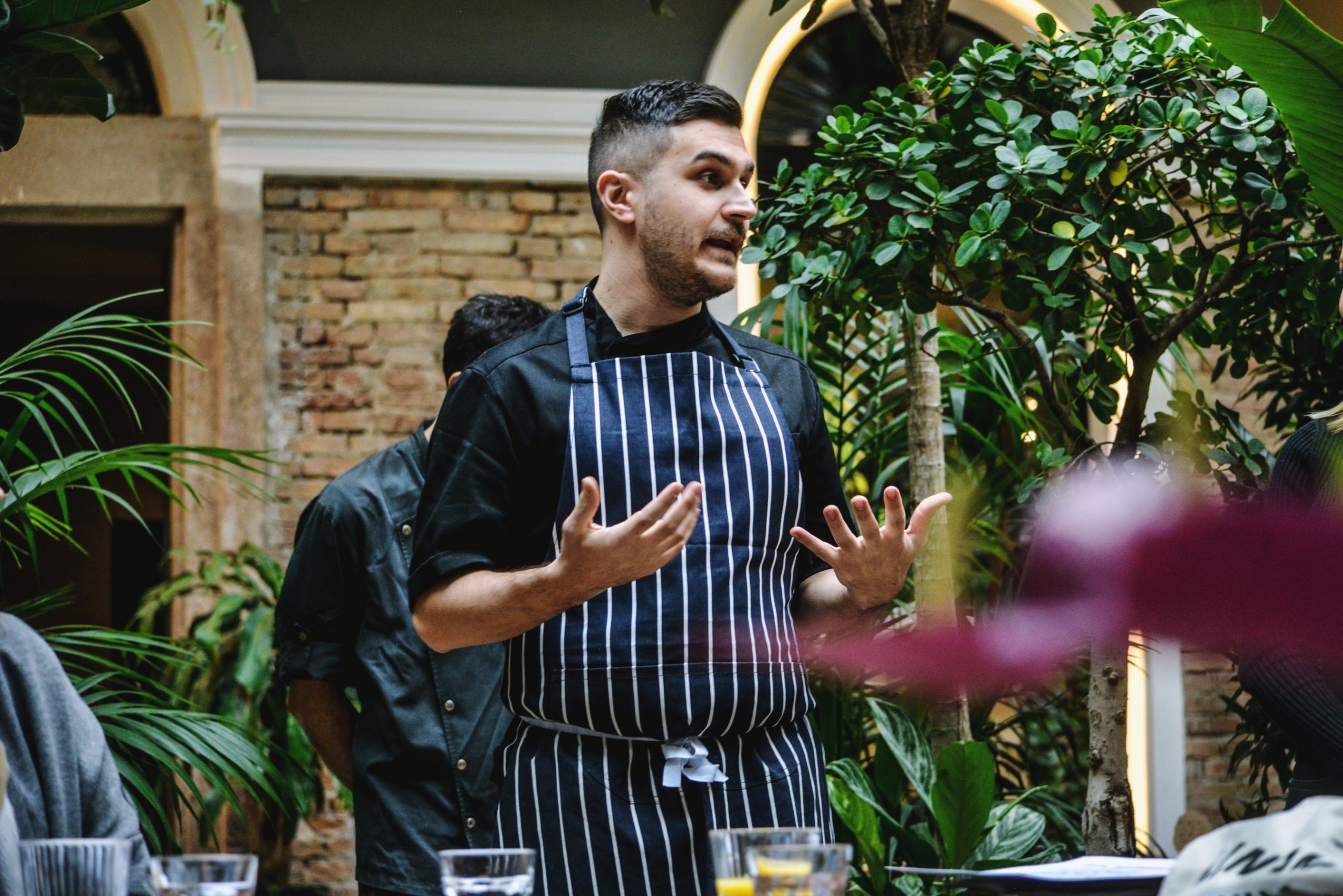 A hely bejárása a GARDEN°-ben indult, ahol megtudtuk, hogy a fák Hollandiából érkeztek 2 hónapja, és összesen 34 féle növénytípussal (például banánfa, fikusz, begónia és kentia pálma) találkozhatunk a helyen. A nevet a térben uralkodó állandó 26 fokos hőmérséklet adta – de vicces egybeesés, hogy akár a házszámra is utalhatna. A konyha igazi fúziós gasztroélmény, ugyanis az olasz Francesco Pastore és az amerikai David Seboek közösen dolgozta ki a menüt. Francesco elmondta, hogy bár korábban sokat utazgatott, de ebbe a projektbe azonnal beleszeretett, és az volt a céljuk, hogy egy olyan mediterrán éttermet hozzanak létre a tápláló, tudatos étkezés szellemében, amihez a francia, a spanyol, az olasz, a görög, a török, de az izraeli konyha nyújtott inspirációt. Fontos volt számukra, hogy egyszerű, és letisztult ételek kerüljenek a kínálatba, méghozzá a legjobb minőségű alapanyagokból – sok-sok zöldséggel, és gyümölccsel. „A koncepciónk a megosztás: megosztani az ételt, a pillanatokat és az időnket.”
