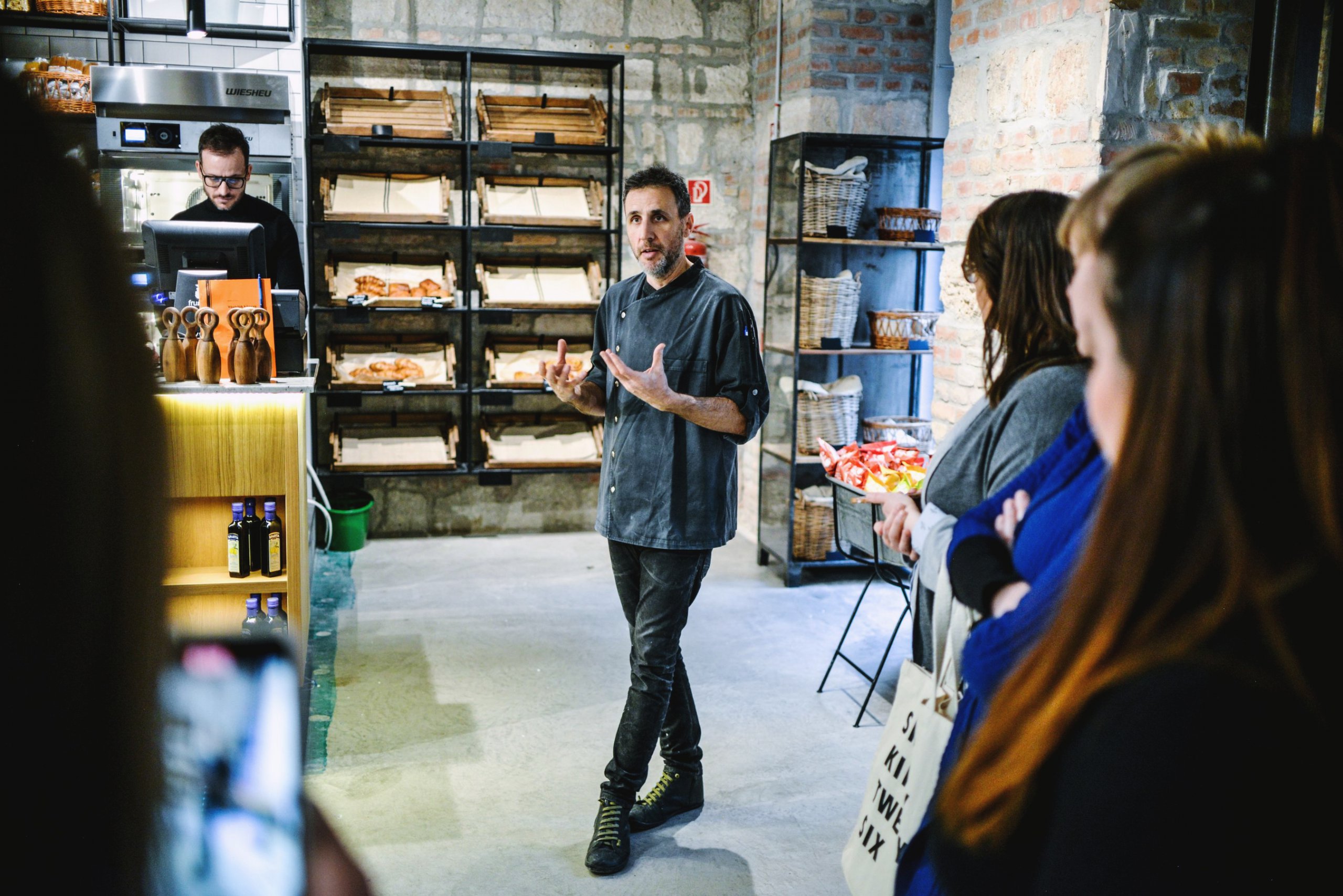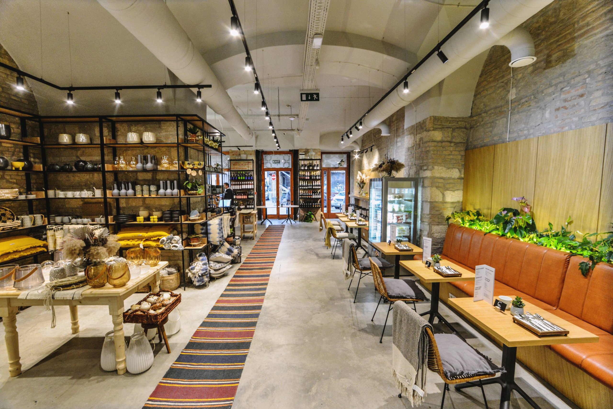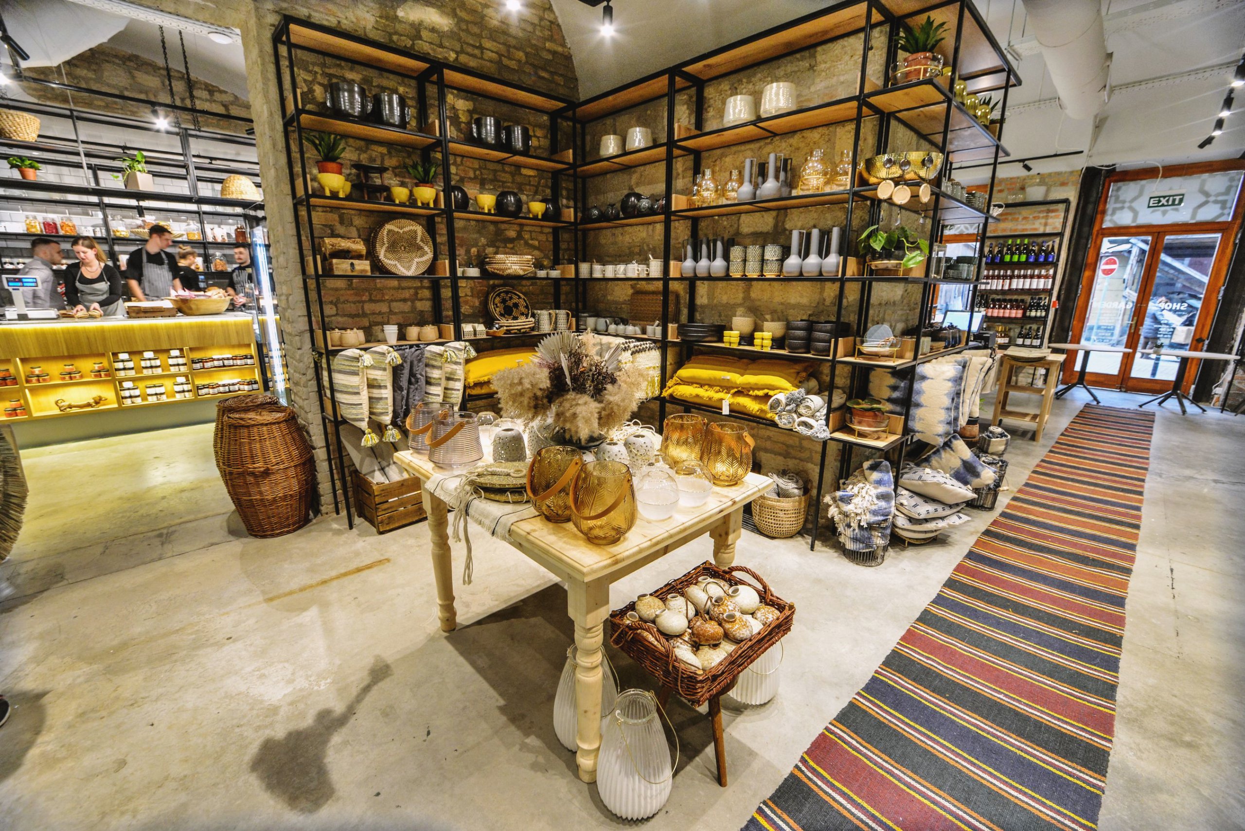 Amikor továbbhaladtunk a SHOP°-ba, David Seboek a pékség kínálatáról is mesélt: házi kovászos kenyereket, pitákat, baguetteket, cibattákat kérhetünk reggelire, ami 10:30-tól elérhető, ebédre pedig a saláták közül válogathatunk – a deli menüje folyamatosan bővül majd. Külön érdekesség, hogy minden ételt olyan tányérokban és tálakban tálalnak, amiket mi is megvásárolhatunk a boltjukban: az edények egy környezettudatos dán cég, a Bloomingville home decor termékei. A Twentysix SHOP°-jában megtalálhatjuk a Zhao Zhou teáit és az Amezze kávéit is, arra pedig nagy gondot fordítottak, hogy a borok magyar pincészetekből érkezzenek.