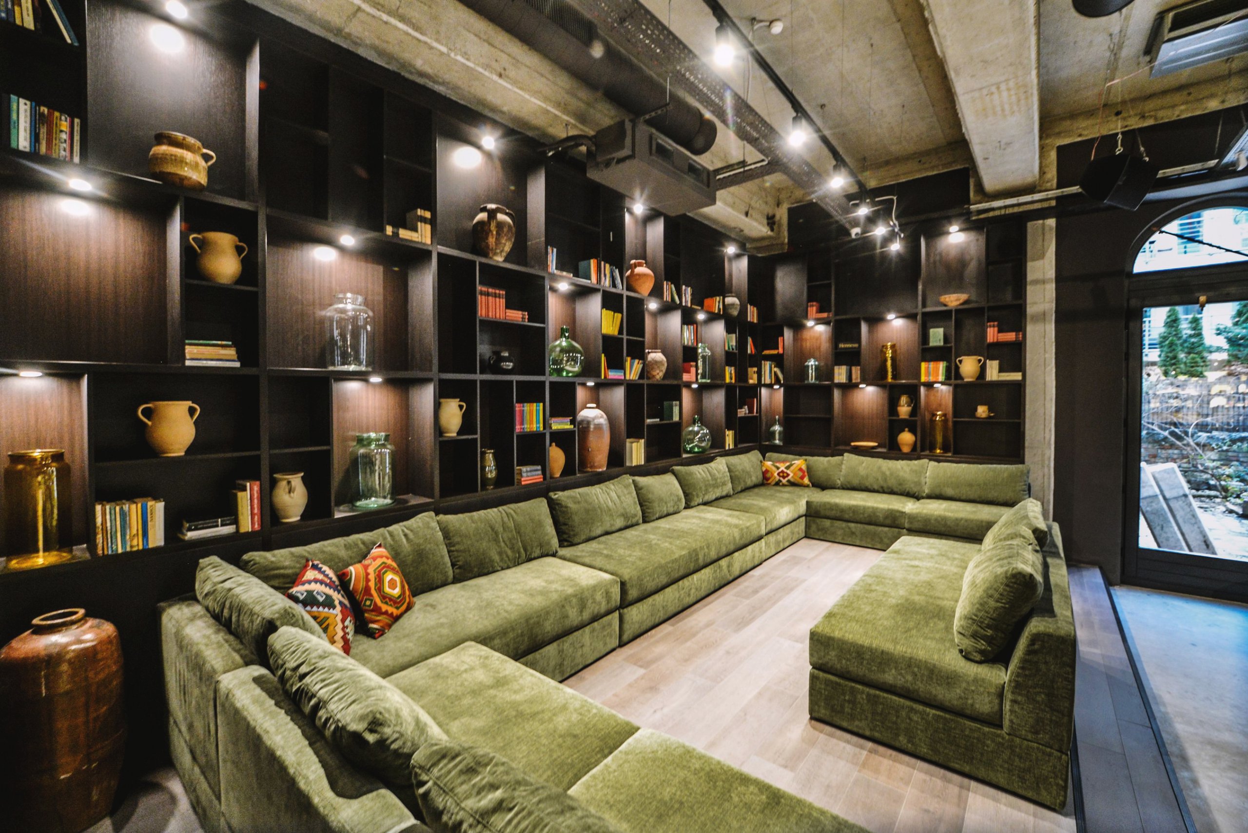A túrát a HOUSE°-ban zártuk, ami kicsit talán ki is lóg a sorból, hiszen ez a különterem inkább az otthonosság érzetét akarja megteremteni: könyvekkel, fotelekkel és kandallóval. A lakásstúdió háziasszonya Marton Adrienn, aki megosztotta velünk, mik a terveik ezzel a térrel: havonta tematikus workshopokat, és különböző vacsoraesteket szeretnének majd tartani. A céljuk, hogy az ember szinte hazajárjon ide, és otthon érezze magát. De szeretettel várják azokat is, akik sajtótájékoztatót, céges rendezvényt, vagy születésnapot tartanának itt.