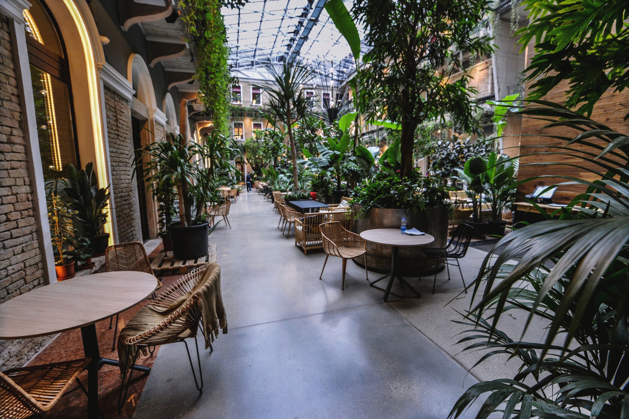 A budapesti Király utca számomra mindig a bulinegyedet jelentette: az évek során a pubok, kocsmák és a gyorsbüfék képeit társítottam hozzá. Szóval pár napja a mindfulness érzés valószínűleg az utolsó lett volna, ami eszembe jut róla – éppen ezért hatalmas élmény volt, amikor kedden reggel beléptem a 26-os szám kapuján. Megérkeztünk ugyanis a Twentysix 1800 négyzetméteres őserdőjébe, ahol 500 növény segítségével varázsolt mediterrán világot Budapestre Poisson-Angeli Barbara. „Sétáltam az utcán, és láttam, hogy kiadó ez a hely. Akkor még nem volt konkrét elképzelésem, de mivel már van egy burgerezőm, gondoltam rá, hogy más irányba is el kellene indulnom. Először a térbe szerettem bele, aztán eszembe jutott: mindig is arra vágytam, hogy legyen egy zöld hely, ahol meg lehet pihenni a városban. Ezt mediterrán országokban könnyedén megteheti az ember, de Magyarországon októbertől márciusig elég borongós az idő. Szerettem volna egy közösségi teret, ahol egy kicsit elvonulhatunk, ahol olyan érzésünk lehet, mintha nyaralnánk” – mesélte a Twentysix megálmodója. „Ehhez a ház tulajdonosa is nagy segítséget nyújtott, mert üzlettársként beszálltak a koncepcióba.”