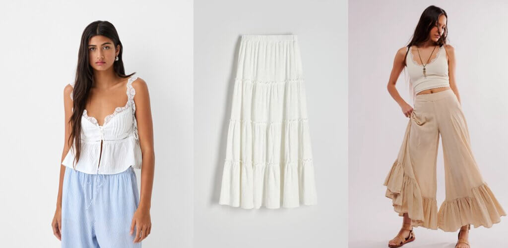 Azonban ha egy lehetnyit hétköznapibb lookra vágyunk, vagy nem érezzük magunkat kényelmesen talpig (mű)bőrben a nyári estéken, akkor is van módja annak, hogy viseljük a cowboy core-t. Egy V-alakú nyakkivágás például rögtön vadnyugati hangulatot kölcsönöz minden idén egyébként is szuper trendi mellénynek. A tökéletes összhatás érdekében viseljük farmershorttal vagy midiszoknyával. Ha pedig szoknya, akkor sem egy rétegzett maxifazonnal, sem egy kacér csipke darabbal nem nyúlhatunk mellé. Az esztétika elsajátítása érdekében bátran bevállalhatunk egy bő, fodrozott szárú nadrágot vagy egy horgolt ruhát is. Ha pedig egyszerűbbre vennénk a figurát, a farmerral és az idén nagy visszatérőnek mondható, nyomott mintás pólóval is működőképes lehet a western ihlette outfitünk.