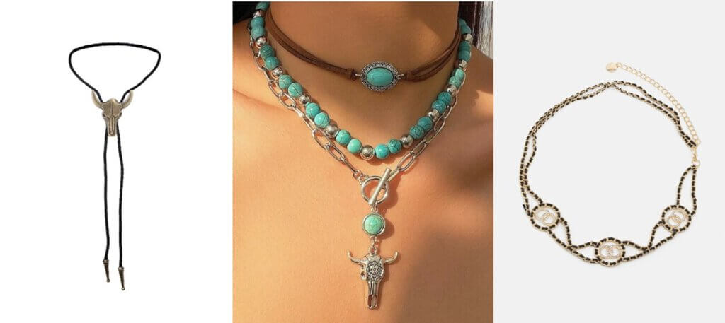 A cowboy kalapokon és a western csizmákon túl is van élet, és bizony bőven akad még olyan kiegészítő, amivel extrázhatjuk megjelenésünket. Elég csak a Louis Vuitton férfi kollekciójának kifutóján is kulcsszerepet kapott zsinórnyakkendőkre gondolnunk, de a különböző csillagmotívumokkal díszített ékszerek is rég voltak már olyan trendik, mint most. De azok is, akik nemrég a mob wife irányzatba kapcsolódtak be, újra tudják hasznosítani egy-egy kiegészítőjüket, így például a láncos övek és a hangsúlyos, arany ékszerek is új életet kaphatnak. De persze az ezüstről sem kell megfeledkeznünk. Utóbbi türkizkék és barna részletekkel illik bele leginkább a cowboy core ihlette lookokba.