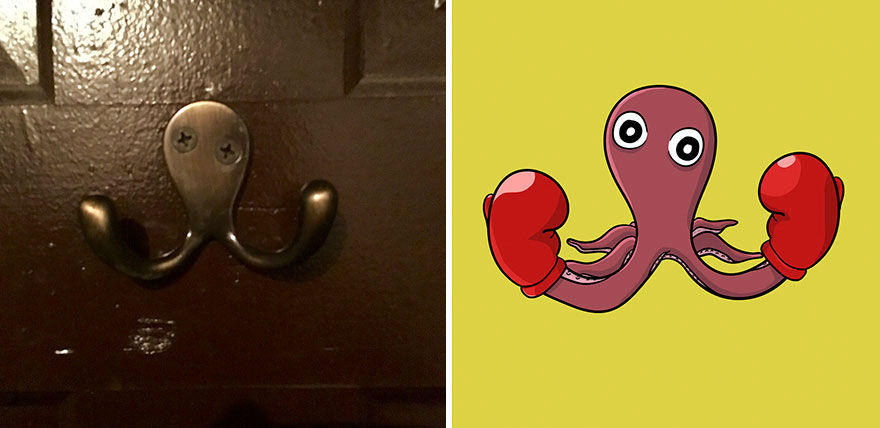 Nincs olyan ember, aki gyerekként egyszerűen ne imádta volna azzal elütni az időt, hogy a hétköznapi tárgyakban arcokat keresett. Valljuk be, sokszor még felnőttként is feltűnik, mennyire emberi karaktere van néhány élettelen tárgynak. De ne aggódj, teljesen természetes, ha idősebb fejjel is gyakran elmosolyodsz azon, ahogy a félbevágott kaliforniai paprika rémült arcot vág. A jelenség olyannyira közismert, hogy külön kifejezést találtak ki rá: pareidolia. Az egész valójában egyfajta vizuális illúzió, hiszen tudjuk, hogy egy kavicsnak vagy egy postaládának nincs lelke, a belelátott arc miatt mégis érzelmekkel ruházzuk fel. Ezt a készséget fejlesztette művészi szintre Keith Larsen illusztrátor, a The Faces Within Places alapítója. Larsen évekkel ezelőtt a saját otthonában döbbent rá, hogy mennyire érzékeny erre a jelenségre, ugyanis a téglafal nézése közben folyamatosan új arcokat fedezett fel. Hamarosan annyi karakter rajzolódott ki a fejében, hogy úgy döntött, papírra veti őket. Így születtek meg azok a rajzfilmszerű figurák, amelyeket a @thefaceswithinplaces Instagram oldalán is megoszt. A cilinderes tűzcsaptól kezdve a bokszoló polipig mindenre találunk példát, mutatunk is néhányat Larsen szellemes rajzaiból.