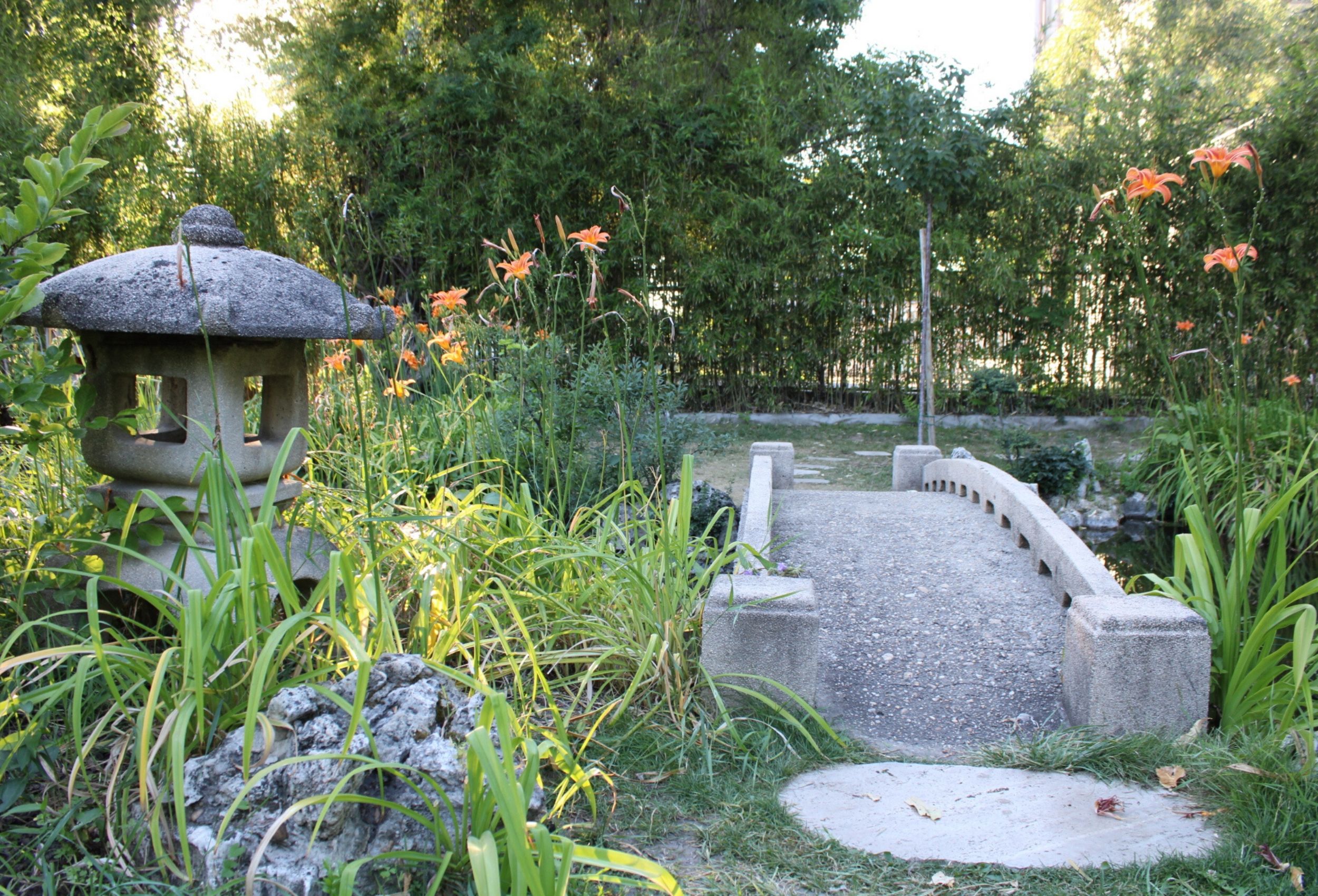 Igazából minden megtalálható a zuglói kertben is, ami a japánkertek sajátja: víz, sziget, szigetre vezető híd, bambusz, szabadtéri pavilon, kő és kőlámpás. Nem baj, ha egyszerű parkként tekint a kertre, az, aki ide betér. Akkor is átjárja a béke, a szépség és feltöltődve távozik. Észre sem veszi és figyelmével átadja magát a természetnek.