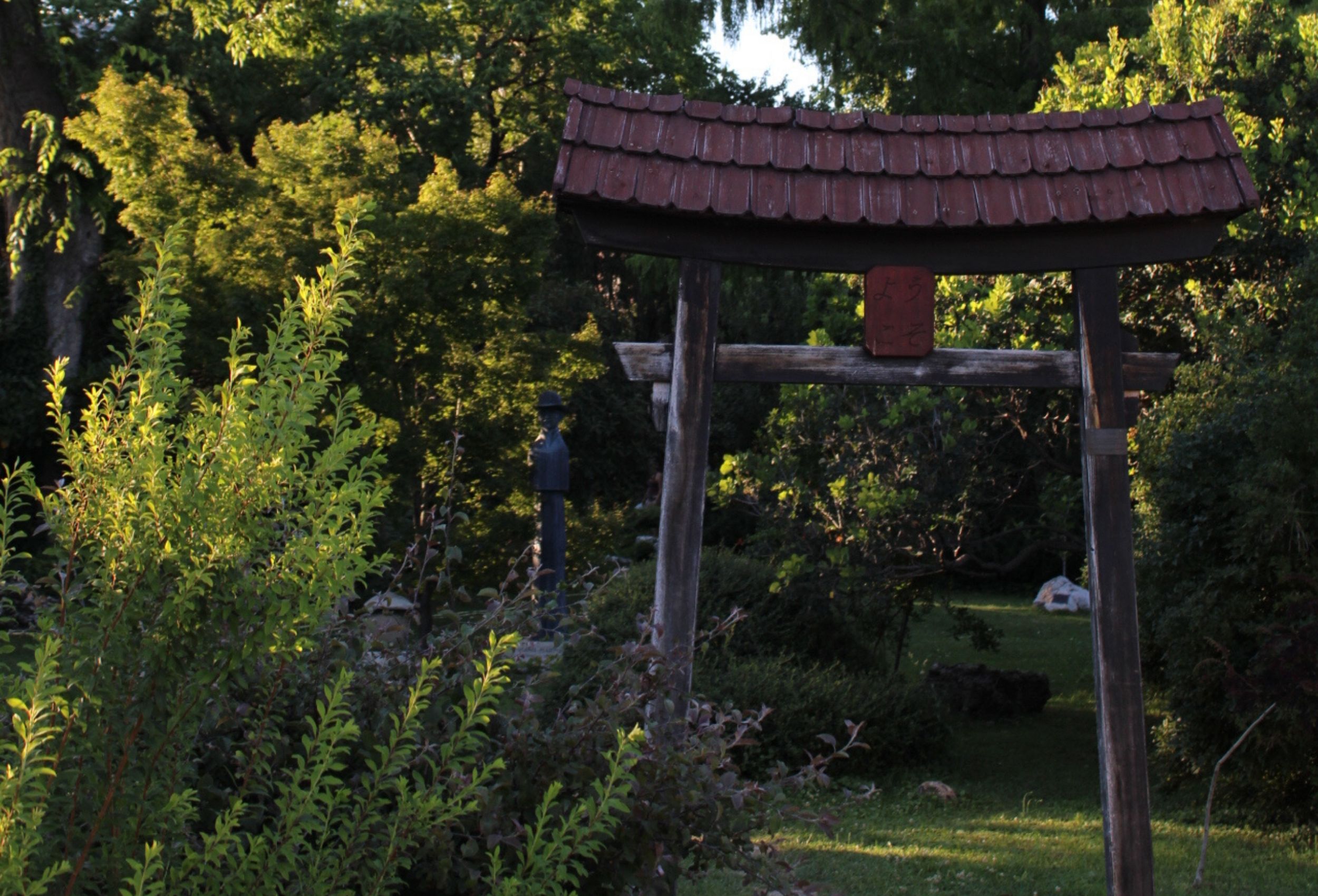 Gyönyörű, ívesen faragott kapun (torii) léptem be, rajta felirat: Isten hozott. Azzal, hogy betettem lábamat a szent térbe, hátrahagytam a zajos, felesleges gondolatokkal és szmoggal szennyezett világot. Mintha a természet szentélyébe érkeztem volna. Kis geometrikus alakzatokból kialakított utakra leltem mindenütt. Nem kellett sokat gondolkodnom, a kert és a kövek szellemei vezettek utamon. Egy kis hídon átkelve, majd a lépőköveken átsétálva válaszúthoz érkeztem. Mindegy, melyik irányt választja az ember, hiszen balra a jó, jobbra a még jobb várja. Erre egy hegy alakú kőrakás – a japán Fuji hegy szimbóluma, arra a kis tó, partján a művészi gonddal kialakított törpefa. Az irányított haladási útvonalú sétakertben még az is előre eltervezett, hogy hol nézünk majd felfelé és melyik részen a földre. E szerint helyezi el a tervező a díszeket, alakítja a növények sorát. Ha a lépőkövek által kijelölt úton és a szemlélődő sétában elfáradnánk, megpihenhetünk az árnyas padokon.